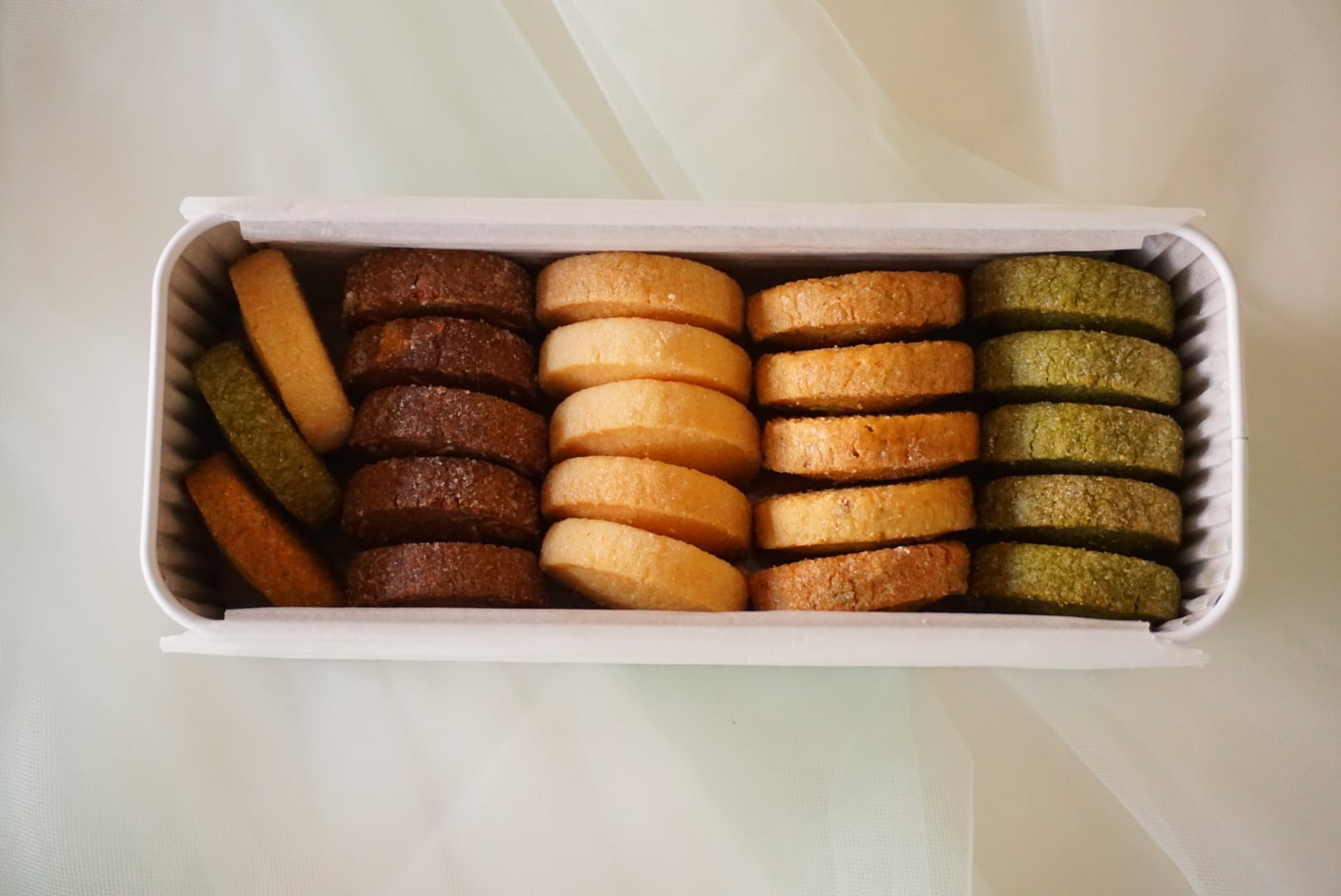 小麦粉・バター・砂糖・ピスタッチオ・アーモンド・卵・ピスタチオ・ココア・抹茶
